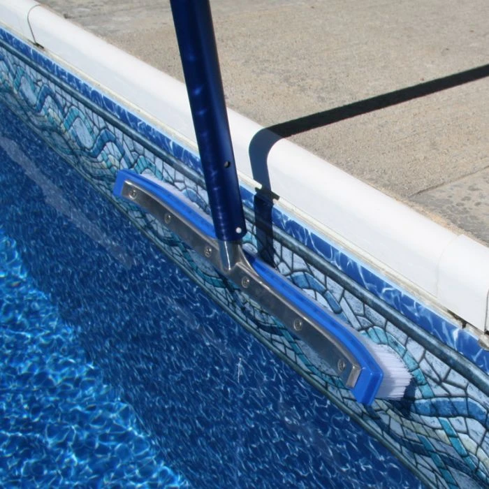 Perfect for algae and deposits not picked up by filtration or vacuuming. Each brush is 18 in. wide. Heavy-duty aluminum backing and handle bracket. Deluxe nylon bristles.